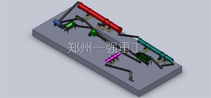 有机肥生产线包括发酵设备、造粒设备、粉碎设备、搅拌设备、筛分设备、冷却设备、烘干设备、包膜设备、自动包装设备等工艺流程。