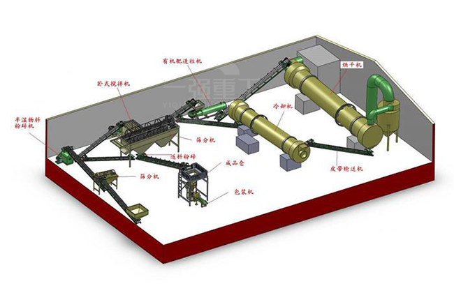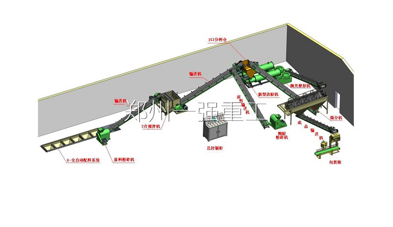 新型有机肥生产线的连接都是用皮带输送机进行连接的,皮带机的长度和条数可以根据实际场地进行设计.以上方案敬请参考.